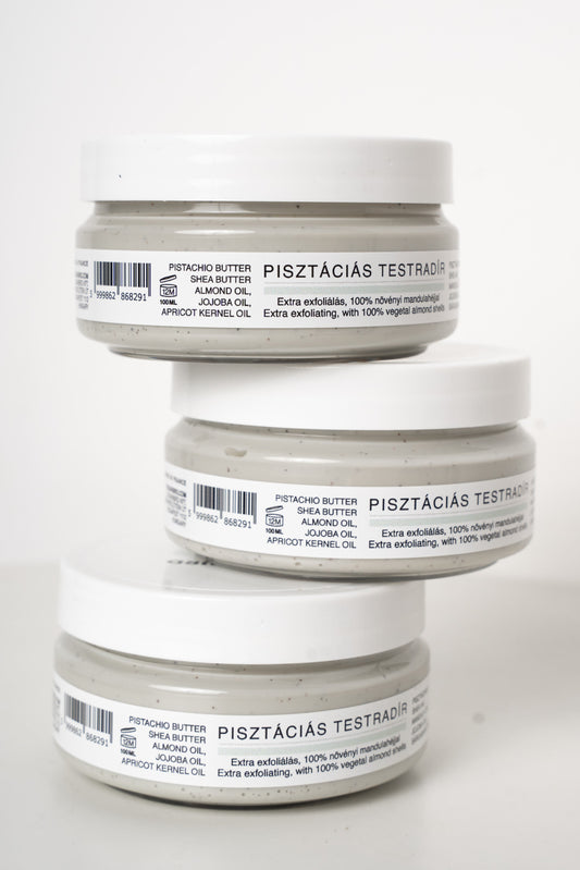 Édesmandulás-pisztáciás testradír 100% növényi mandulahéjjal
